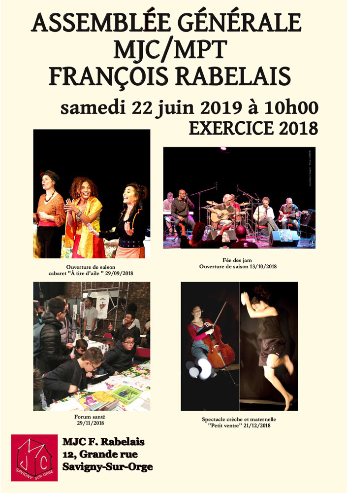 Cette réunion des adhérents, des administrateurs et du personnel de la MJC, constitue un rendez-vous important pour notre Maison et l’occasion de donner votre point de vue, d’exprimer vos souhaits sur le fonctionnement de notre MJC.