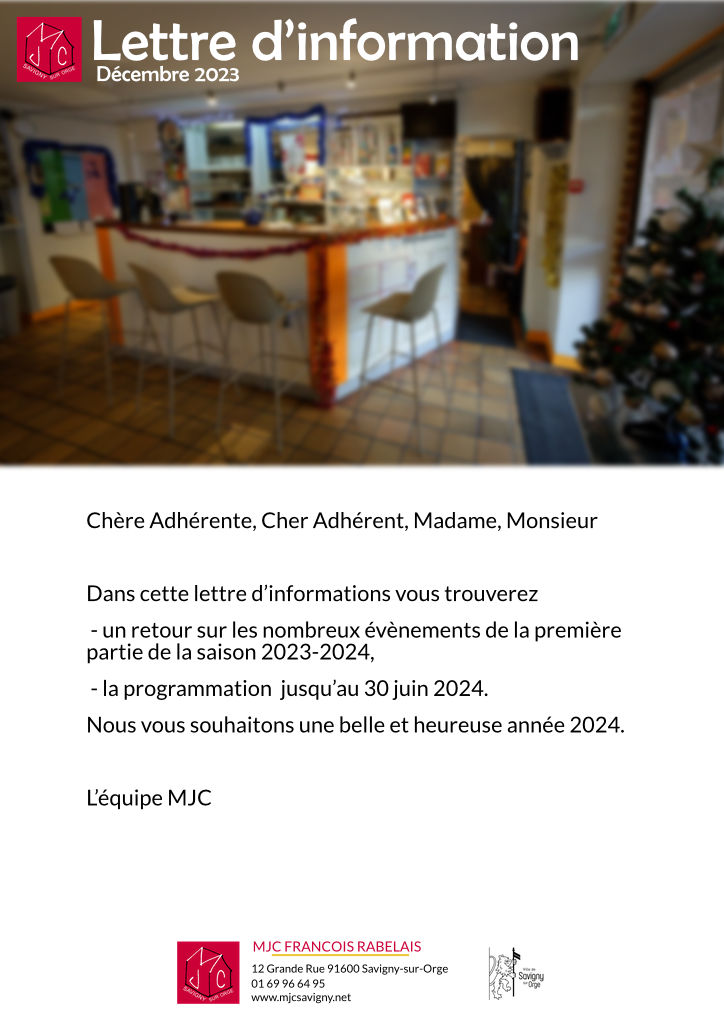 Toute l’équipe de la MJC vous souhaite une belle et heureuse année 2024.